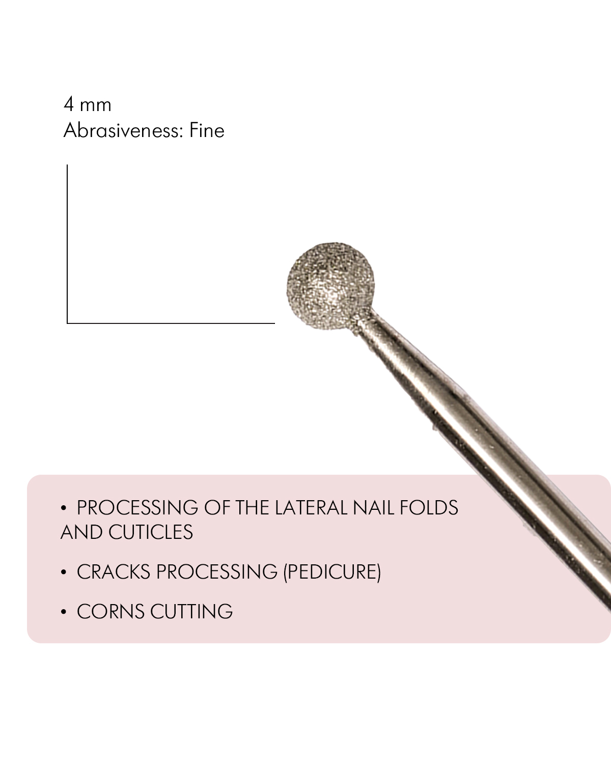 Dimanta frēze kutikulas un sānu valnīšu apstrādei Diametrs 4mm Abrazīvums F (smalks)