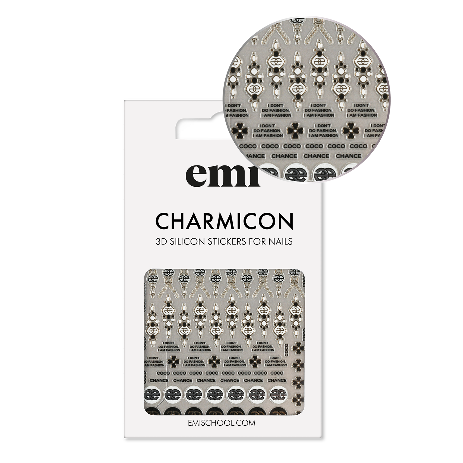 Charmicon 3D Silicone Stickers – silikona uzlīmes nagu dizainam Silikona uzlīmes – ļoti vienkārši pielietojumā – veido dizainus ar EMI! Noņem no pamata ar pinceti, līmē uz glancēta pamata bez lipīgā slāņa (var attaukot pamatu ar EMI Eurocleanser Lux vai pamatu pārklāt ar topu bez lipīgā slāņa E.MiLac Top gel Tackless),pielīmē kārtīgi uz naga, un visu nagu pārklāj ar topu.