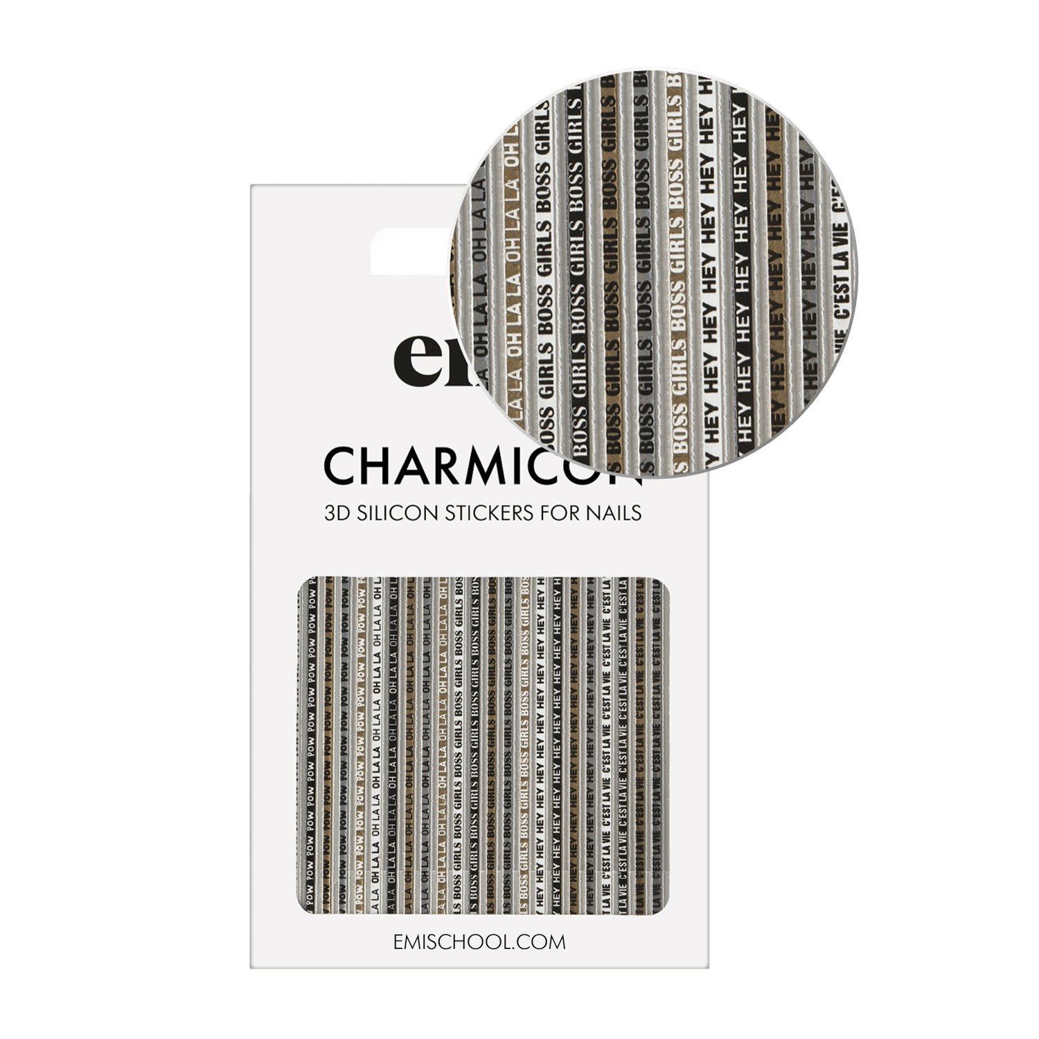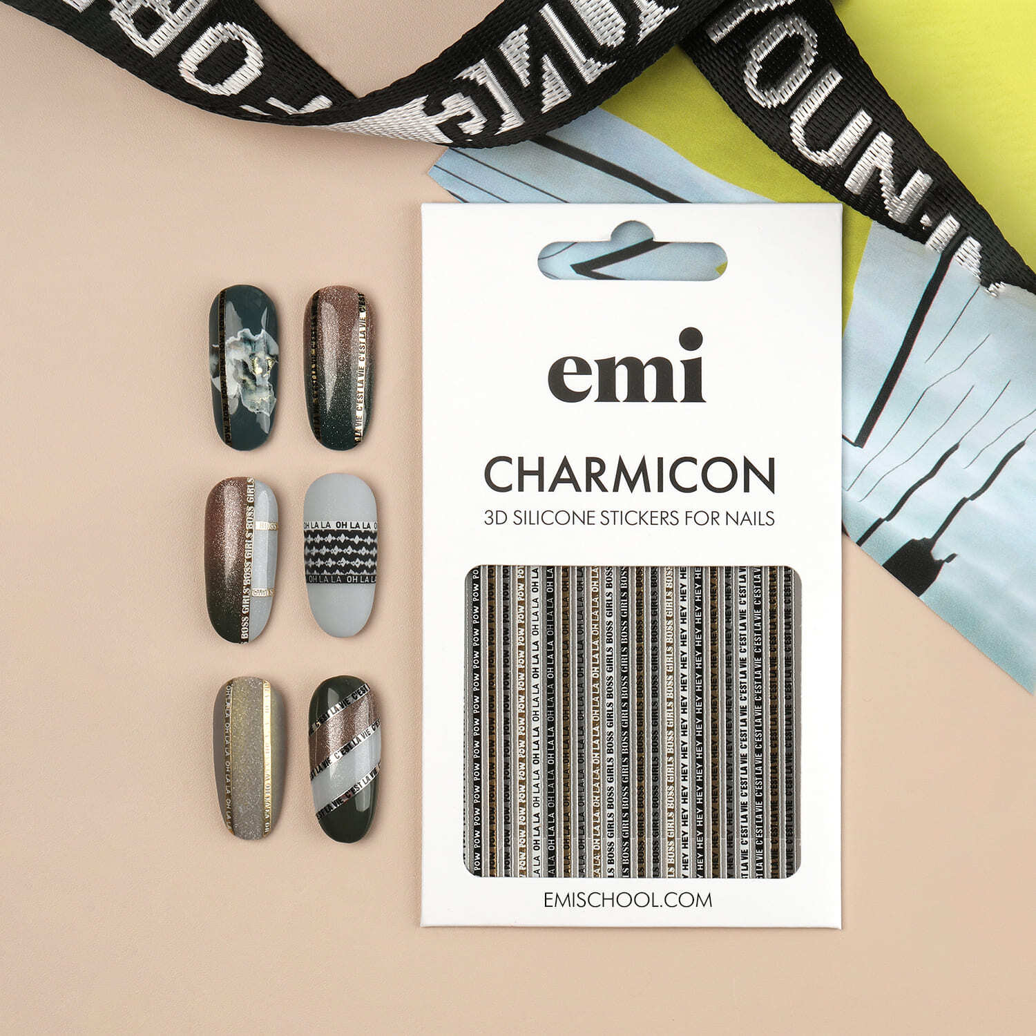 Charmicon 3D Silicone Stickers – silikona uzlīmes nagu dizainam Silikona uzlīmes – ļoti vienkārši pielietojumā – veido dizainus ar EMI! Noņem no pamata ar pinceti, līmē uz glancēta pamata bez lipīgā slāņa (var attaukot pamatu ar EMI Eurocleanser Lux vai pamatu pārklāt ar topu bez lipīgā slāņa E.MiLac Top gel Tackless),pielīmē kārtīgi uz naga, un visu nagu pārklāj ar topu.