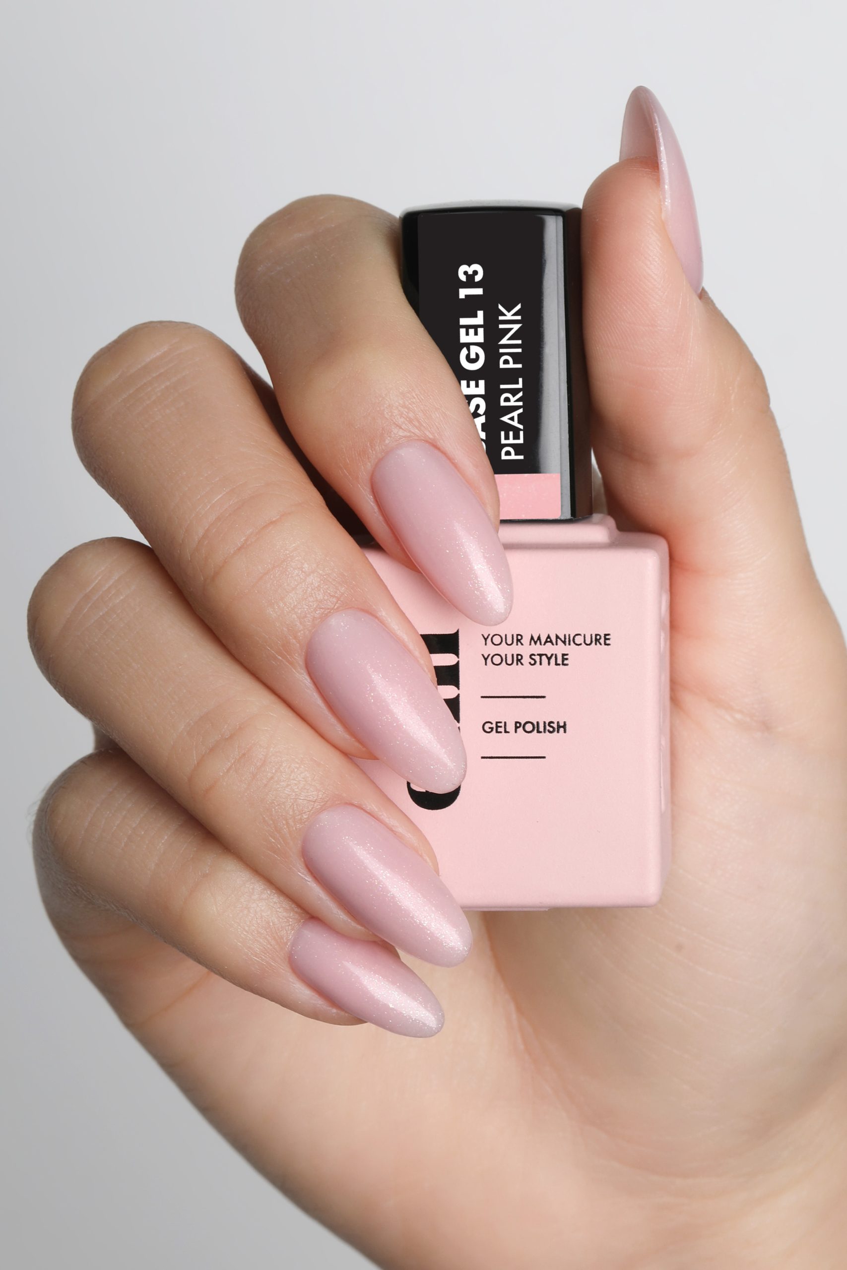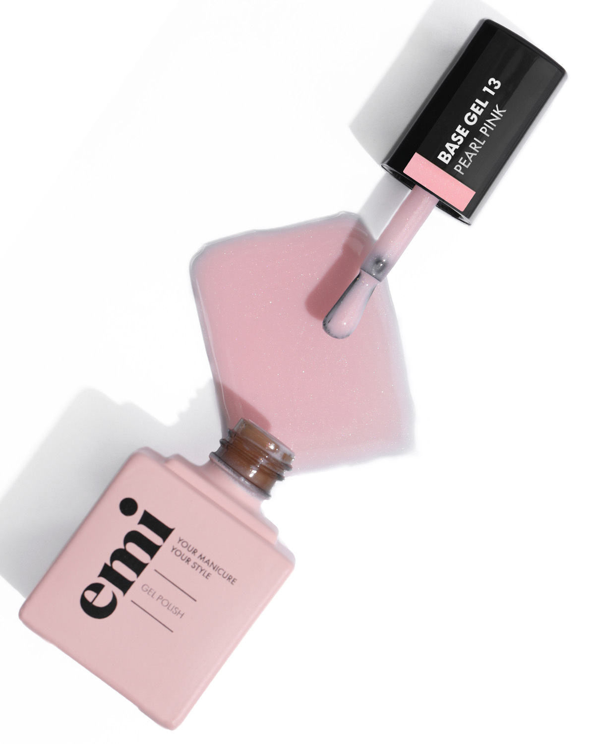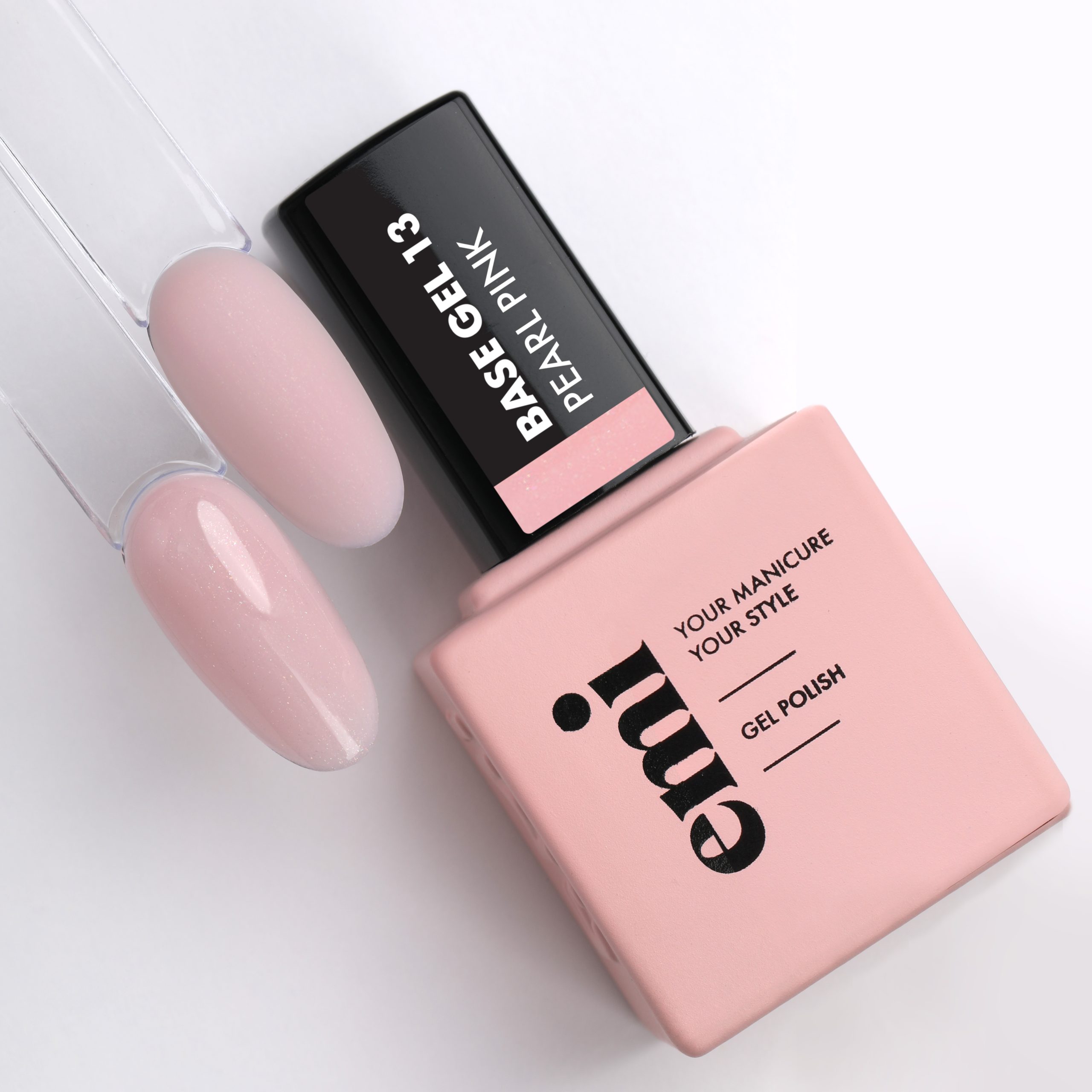 E.MiLac Base Gel Pearl Pink #13 15ml – kamuflāžas bāze Maigi rozā tonis ar spīdīgo pigmentu Var kalpot ka pamattonis franču manikīram Viegli lietot nagu stiprināšanai un izlīdzināšanai