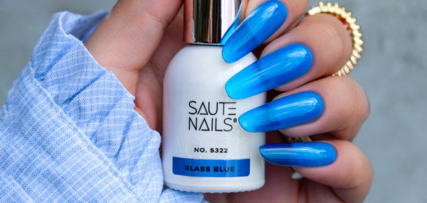 -Uz sagatavotā gēla vai hibrīda nagu dizaina uzklājiet plānu Glass Blue S322 kārtu.
