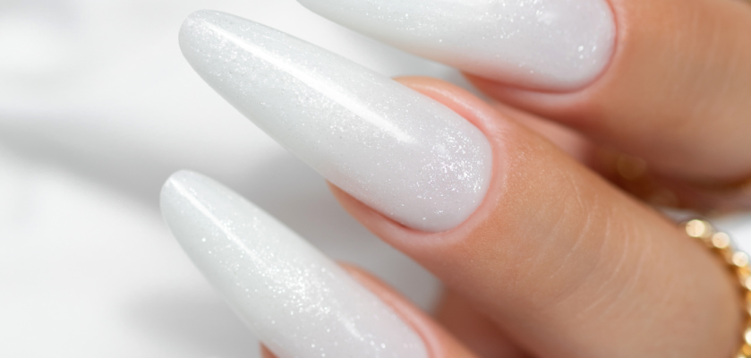 Glitter Milky White – lielisks tonis, kas der gan apvienojumā ar franču manikīru, gan Babyboomer nagiem, gan patstāvīgam pārklājumam.