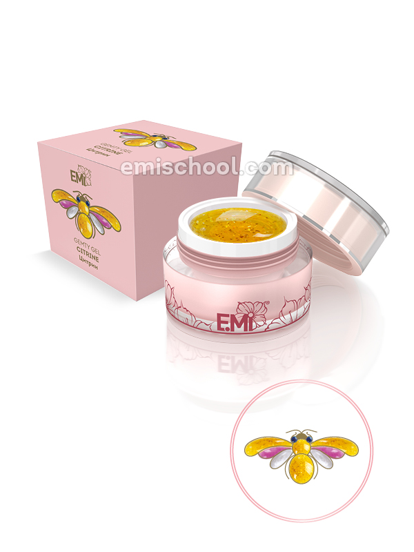 Gemty Gel – caurspīdīga, zaigojoša konsistence, pateicoties kurai jūs varat sasniegt nepārspējamu vitrāžas efektu. Gemty gel lieliski darbojās kopā ar īpaši izstrādātiem Charmicon un Naildress. Polimerizācija E.Mi lampā (30W) 1minūte vai LED/CCFL 2-3 minūtes