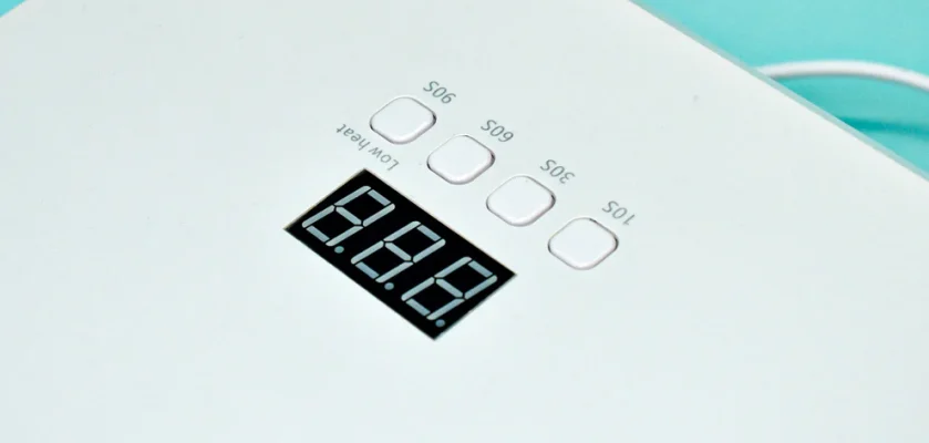 ŽĀVĒŠANAS LAIKS: – 30 sekundes krāsu gēliem, puspermanentajām nagu lakām, virskārtām, bāzes lakām – 60 sekundes būvējošiem gēliem un pārklājumiem