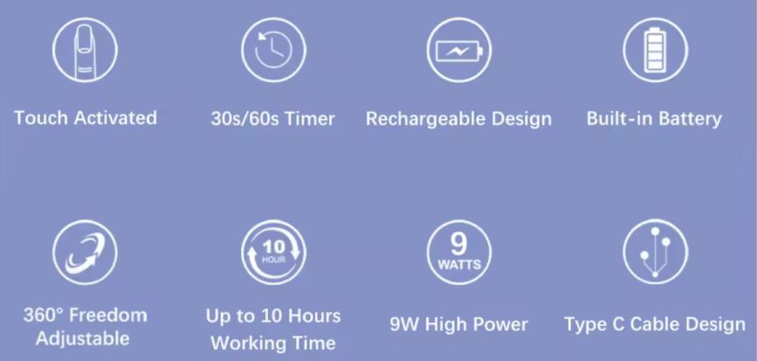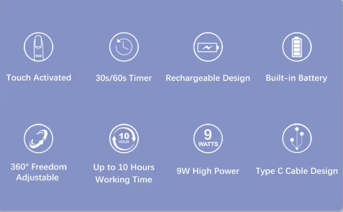 LED mini nagu lukturis 9W ar statīvu, kuŗš ir grozāms un lukturi var izņemt no statīva.