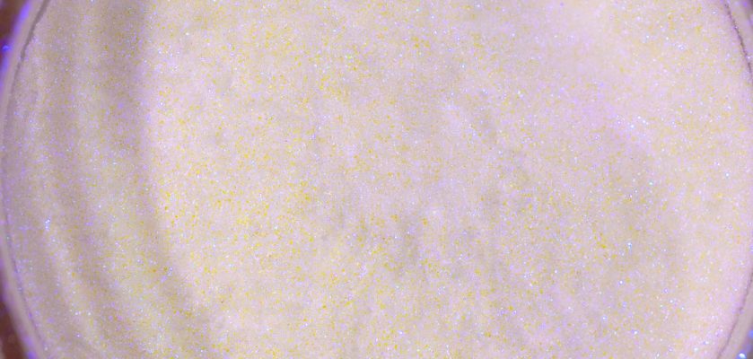 Sea Glass ir smalki samalti putekļi, kas rada mirdzošu virsmu ar zilu mirdzumu un dzelteniem atspīdumiem, piešķirot jūsu stilam unikālu stikla efektu.